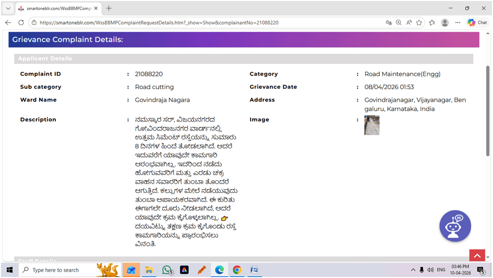 ಈ ಘಟನೆ ನಾಗರಿಕರ ಪ್ರಶ್ನೆಗಳನ್ನು ಎಬ್ಬಿಸುತ್ತದೆ — ದೂರು ಸಲ್ಲಿಸಲು ವ್ಯವಸ್ಥೆಗಳು ಇದ್ದರೂ, ನೆಲಮಟ್ಟದಲ್ಲಿ ತ್ವರಿತ ಕ್ರಮ ಏಕೆ ಕಾಣಿಸುತ್ತಿಲ್ಲ? ಇಂತಹ ಸಮಸ್ಯೆಗಳು ದಿನನಿತ್ಯದ ಬದುಕಿನ ಮೇಲೆ ಪರಿಣಾಮ ಬೀರುತ್ತಿವೆ.
